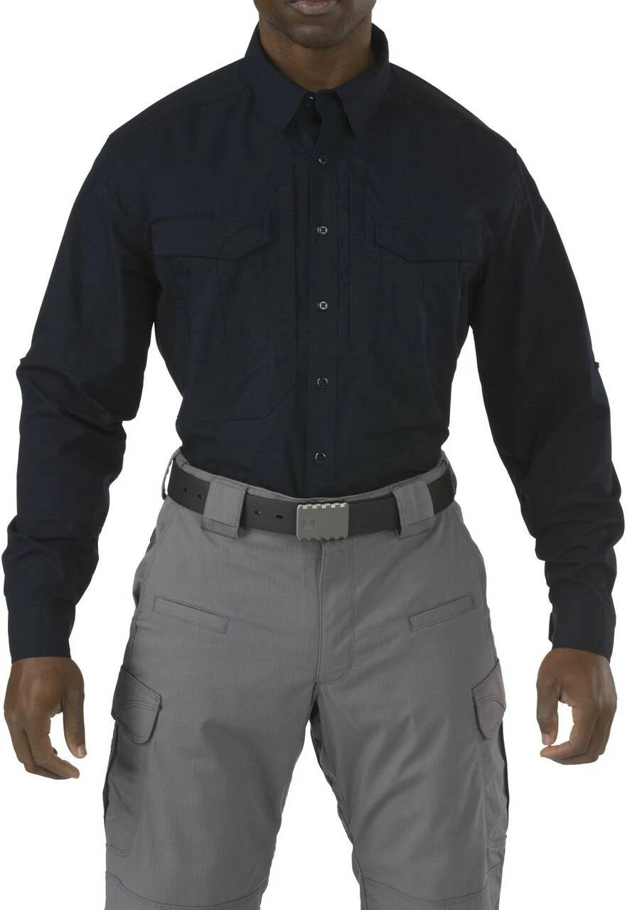 The 5.11 Tactical Stryke Long Sleeve Shirt is constructed from the same 4.84 oz. Flex-Tac mechanical stretch fabric as the popular 5.11 Stryke Pant. This shirt offers unprecedented durability, comfort, and mobility while maintaining a clean and professional appearance. The Stryke Shirt is Teflon treated to repel moisture, stains, and precipitation and the pen pockets on the left sleeve keep your writing instruments within easy reach at all times. Hidden document pockets on the chest offer covert storage space. Bartacks have been added at all major stress points for enhanced durability.