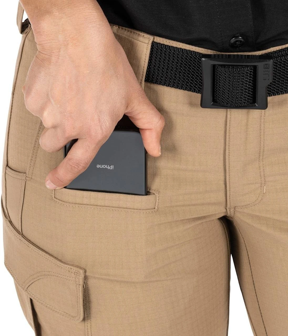 - Durable, comfortable women’s covert cargo pants
