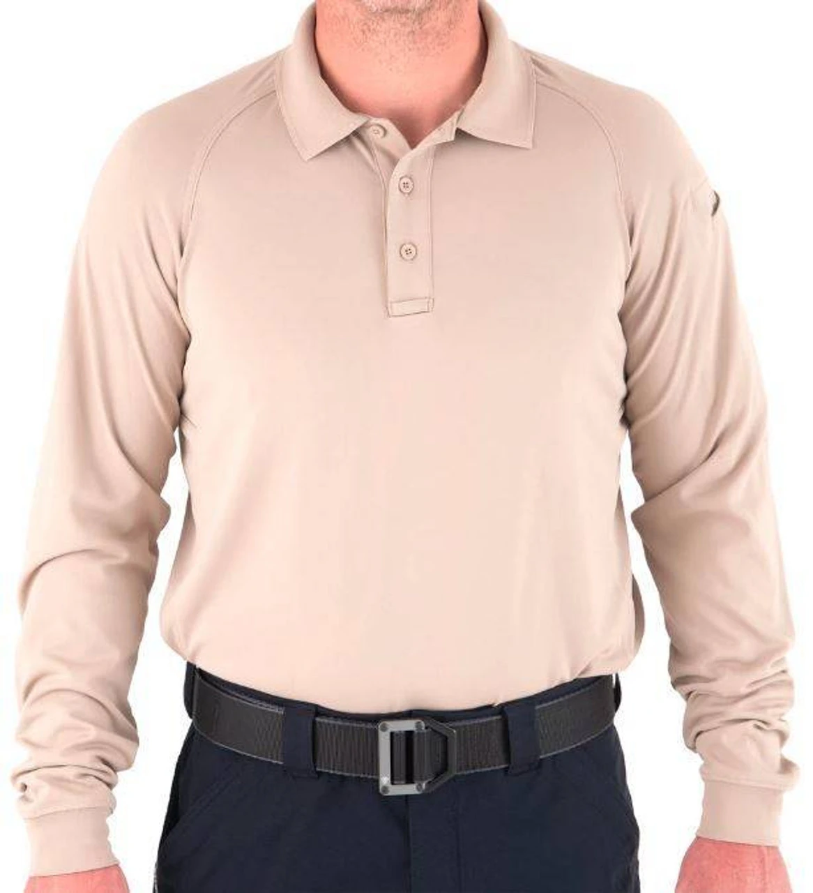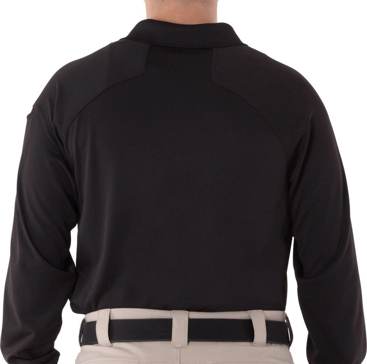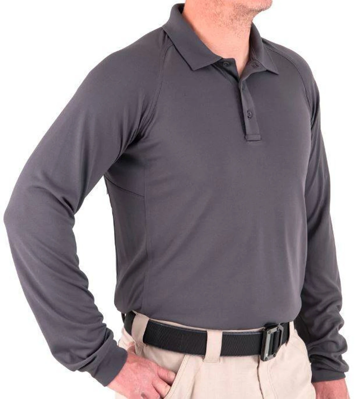 This First Tactical Men’s Performance Long Sleeve Polo is a versatile tactical polo with superior fabric, fit, and features. It is the go-to shirt for active professionals. First Tactical’s Performance Polo works as hard as you do, while maintaining a great look that will hold up under all conditions. 100% polyester jersey is extremely snag resistant yet soft and naturally moisture wicking, with an antimicrobial finish that will give you a fresh, professional appearance that lasts. This Tactical Polo features an advanced pen pocket which accept embroidery while maintaining functionality. The Performance Polo has a natural, tapered fit with a full running gusset that provides a smooth, flattering tuck-in. The no roll collar and perfectly sized rib knit cuffs won’t lose their shape over time, ensuring a professional look for life.